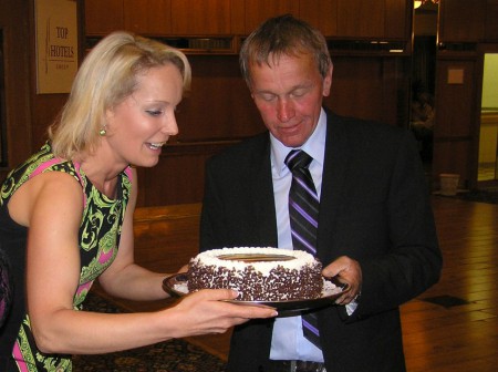 Veteran Car Club Praha > 1000 mil československých 2013 – osmdesáté výročí založení závodu > 030 Miroslav Krejsa byl za vyhledání krásné trati odměněn dortem.jpg